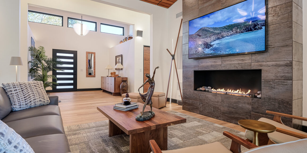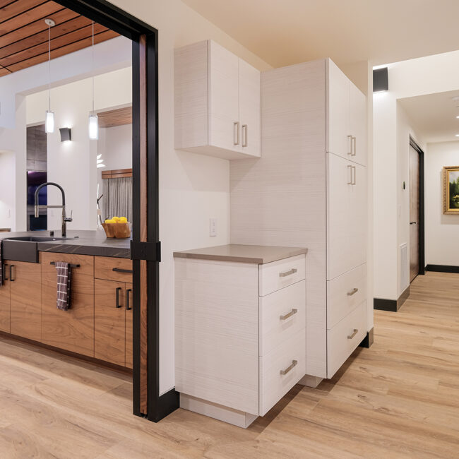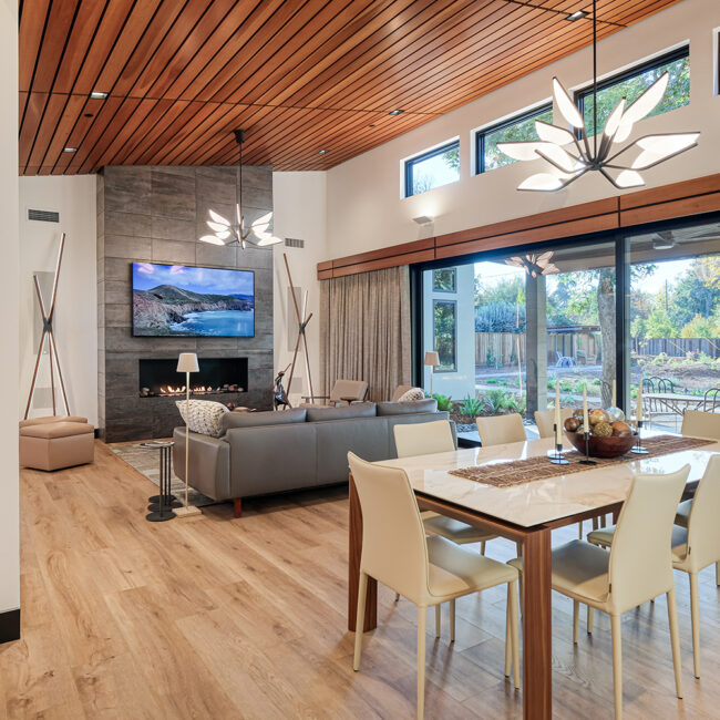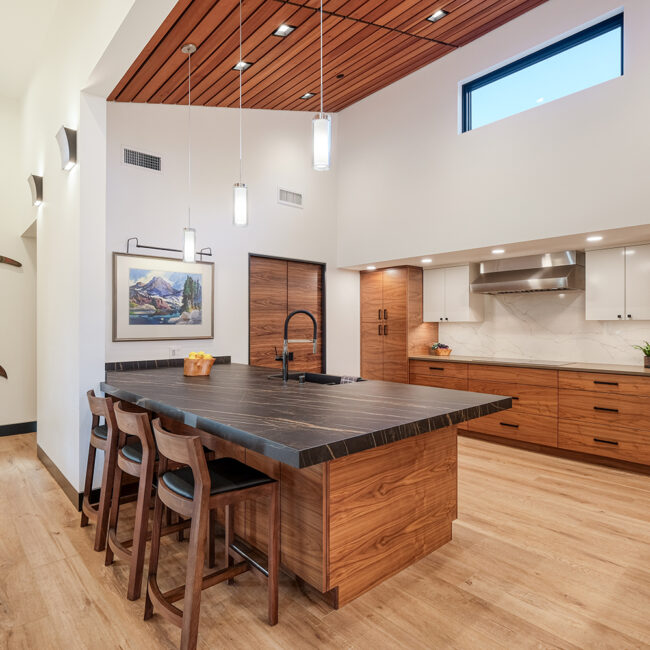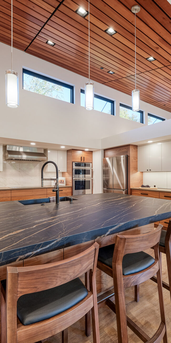 Custom home build crafted to seamlessly integrate natural materials and surroundings, bringing the beauty of the outdoors into a modern living space.