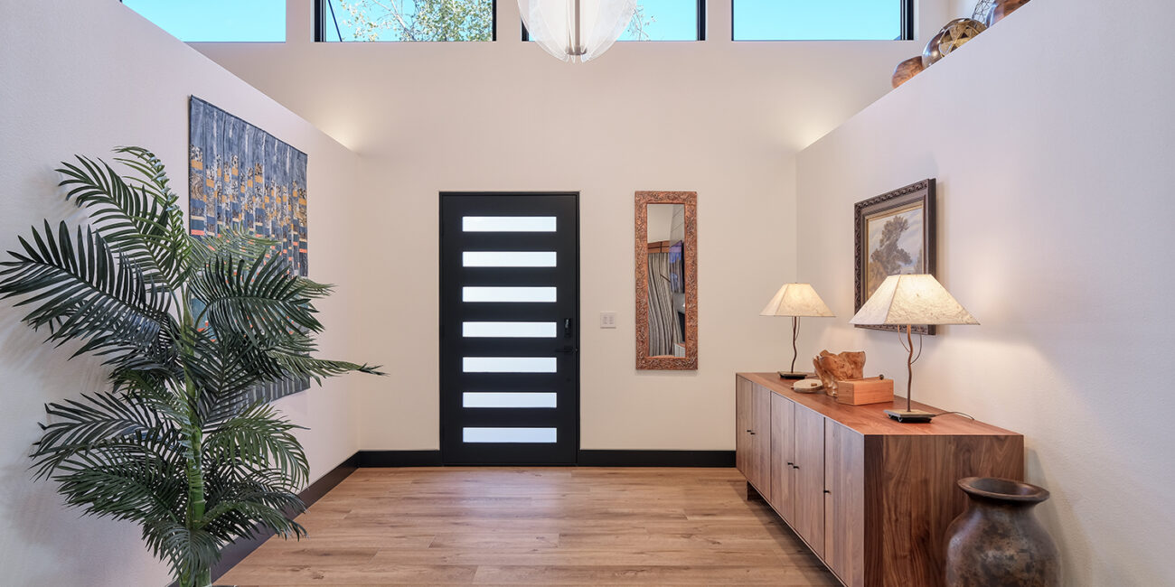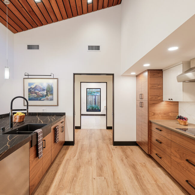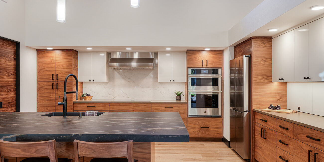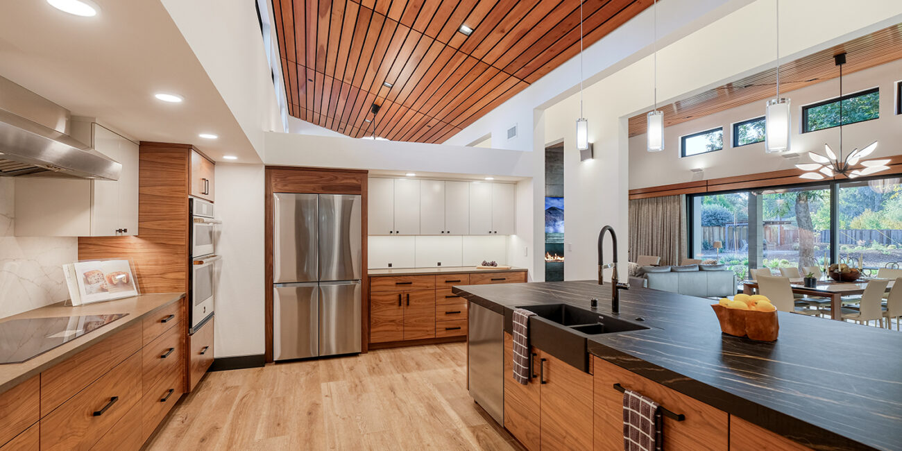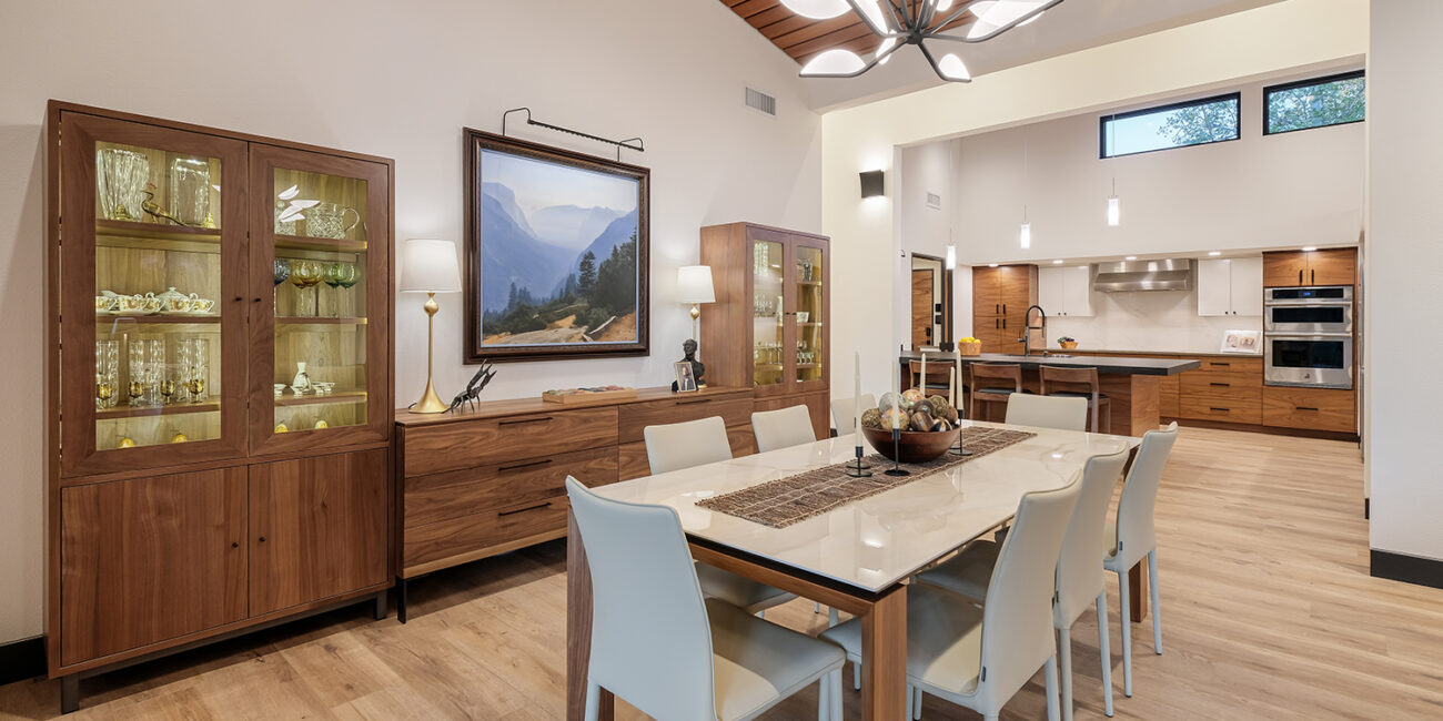 Custom home build crafted to seamlessly integrate natural materials and surroundings, bringing the beauty of the outdoors into a modern living space.